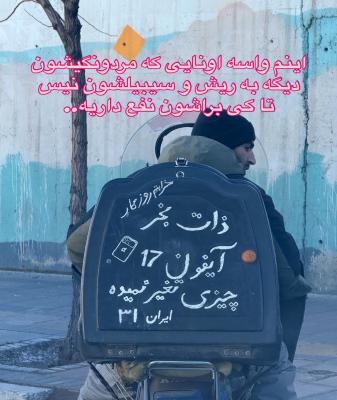 یک پیک موتوری با نوشتن متنی کنایهآمیز روی باکس حمل بار خود، توجه رهگذران را جلب کرده است. «ذات بخر، آیفون ۱۷، چیزی تغییر نمیده»