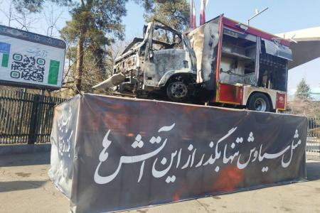 ادامه مطلبخودروی آتش نشانی که توسط سربازان پهلوی_نتانیاهو به آتش کشیده شده بود؛ مقابل چشمان مردم در تهران