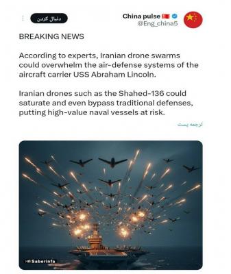 ادامه مطلبصفحه چینی China pulse نوشت: براساس نظر کارشناسان، گروههای پهپادی ایرانی میتوانند سیستمهای دفاع هوایی ناو هواپیمابر یواساس آبراهام لینکلن را تحت فشار قرار دهند.