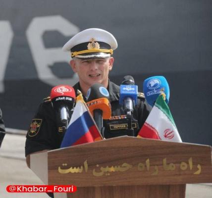 ادامه مطلبفرمانده ناوگان روسیه در مقابل تریبونی صحبت کرد که روی آن نوشته شده است "راه ما راه حسین است"