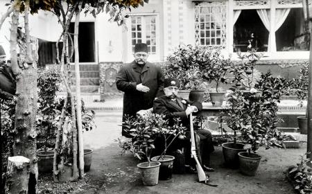 قابی از مظفرالدین شاه و میرزا علی اصغر اتابک (امین السلطان) که در سال ۱۲۸۶ خورشیدی ترور شد.