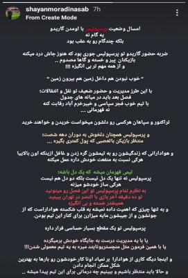 ادامه مطلبشایان مرادینسب، گزارشگر شبکه پرسپولیس درباره اوضاع اسفناک سرخها با انتشار یک استوری نوشت: با این طرز مدیریت فصل بعد در میانههای جدولیم