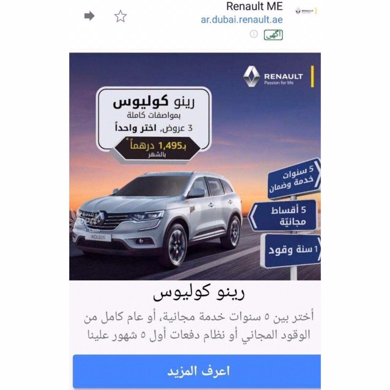 تصویری از آگهی تبلیغاتی شرکت رنو برای فروش محصول خود در امارات را مشاهده می کنید.