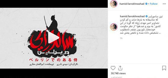 حمید فرخ نژاد در واکنش به شرط تلویزیون برای حذف تصاویر ژوله از تیزر «سامورایی دربرلین» در اینستاگرام خود نوشت: تیزر سامورایی که متاسفانه به شرط حذف و کم کردن تصاویر امیرمهدی ژوله که گویا در این کشور یه بوم و صدهوا از نظر حکومت خودمختار تلویزیون عنصر نامطلوب تشخیص داده شده و ناقص پخش شد.