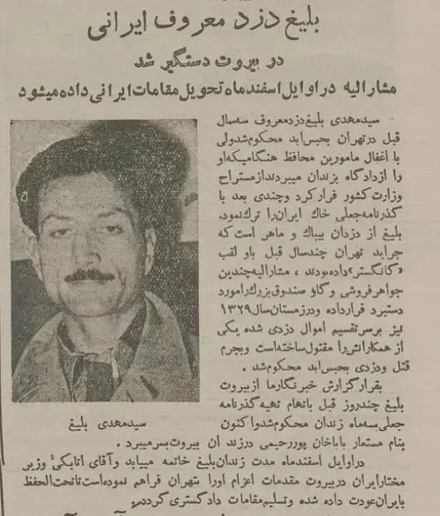 به گزارش بهداشت نیوز، بلیغ به همراه ۲ همدست خود طی یک نقشه ماهرانه که از سکانس سرقت فیلم ریفی فی ساخته ژول داسن طراحی کرده بود، از یک جواهری در کنار هتل پالاس تهران مقدار زیادی جواهرات سرقت کردند. اما ۲ همدست بلیغ او را لو دادند.